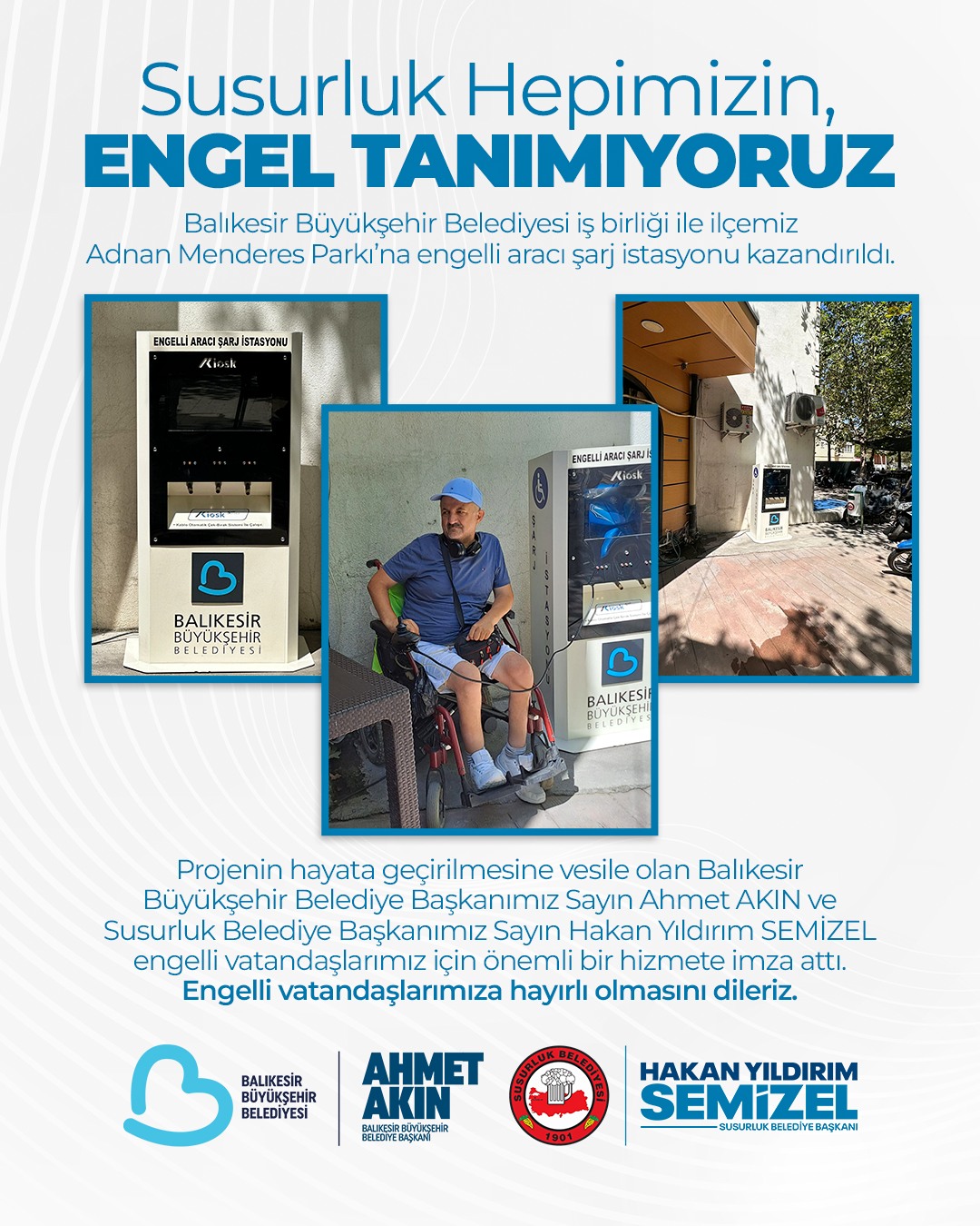 Projenin hayata geçirilmesine vesile olan Balıkesir Büyükşehir Belediye Başkanımız Sayın Ahmet Akın ve Susurluk Belediye Başkanımız Sayın Hakan Yıldırım Semizel, engelli vatandaşlarımız için önemli bir hizmete imza attı.